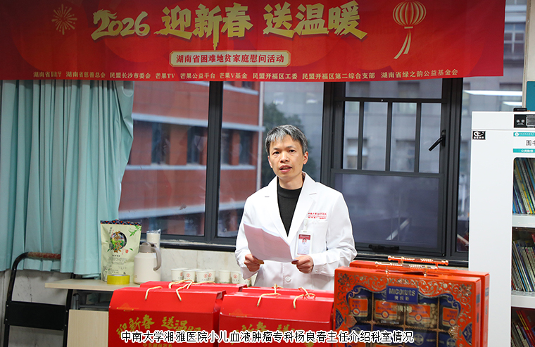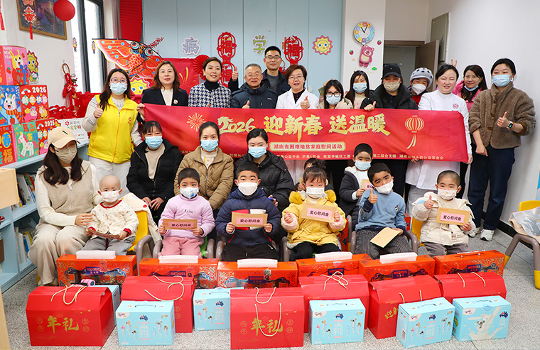 寒冬雖至,溫暖同行。在農(nóng)歷新年來臨之際,湖南省綠之韻公益基金會(huì)攜手湖南省民政廳、湖南省慈善總會(huì)、民盟長(zhǎng)沙市委會(huì)、芒果TV、芒果公益平臺(tái)、芒果V基金等愛心單位共同發(fā)起了2026“迎新春 送溫暖”關(guān)愛湖南省困難地貧家庭公益活動(dòng)。2月9日上午,長(zhǎng)沙市政協(xié)副主席、民盟長(zhǎng)沙市委會(huì)主委劉志紅,民盟長(zhǎng)沙市委會(huì)專職副主委李蘭宏,湖南省慈善總會(huì)辦公室主任、省慈善總會(huì)秘書長(zhǎng)譚顯潤(rùn),芒果TV宣管中心高級(jí)副總監(jiān)、芒果公益平臺(tái)負(fù)責(zé)人劉慧,湖南省政協(xié)委員、綠之韻集團(tuán)總裁、綠之韻公益基金會(huì)理事長(zhǎng)勞嘉,瀏陽市政協(xié)委員、綠之韻公益基金會(huì)秘書長(zhǎng)蔣文帶領(lǐng)愛心志愿者先后來到中南大學(xué)湘雅醫(yī)院、湖南省人民醫(yī)院,為正在接受治療或定期復(fù)查的地中海貧血患兒及其家庭送來愛心慰問金和新春物資?;顒?dòng)還為全省地貧患兒家庭準(zhǔn)備了100份新春大禮包,正陸續(xù)發(fā)出,將節(jié)日溫暖送達(dá)更多家庭。