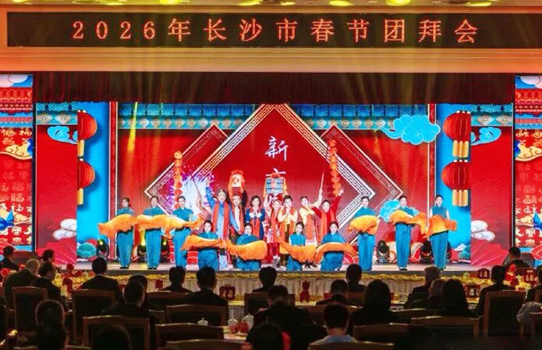 活動現(xiàn)場,與會嘉賓共同欣賞了精彩紛呈的文藝演出。湘劇《沁園春·長沙》由梅花獎得主曹汝龍、周帆傾情演繹,彰顯了湖湘文化的深厚底蘊;少兒花鼓戲串燒《戲韻童聲》活潑生動,展現(xiàn)了傳統(tǒng)戲曲的傳承活力;詩朗誦、舞蹈旗袍秀、花鼓戲選段及歌舞《燈火里的中國》等節(jié)目輪番上演,為團拜會增添了濃厚的文化氛圍和節(jié)日喜慶,生動詮釋了長沙作為歷史文化名城的藝術風采與時代精神。