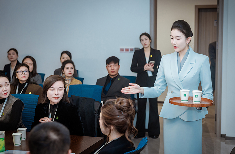 職業(yè)儀態(tài)訓(xùn)練和分崗位服務(wù)實(shí)操演練環(huán)節(jié)以練促學(xué),劉老師針對基礎(chǔ)儀態(tài),以及商務(wù)場景中的言行舉止、溝通分寸逐一示范、現(xiàn)場糾正,并通過互動(dòng)演練、情景模擬、現(xiàn)場點(diǎn)評,幫助學(xué)員建立起“服務(wù)即價(jià)值”的職業(yè)理念,引導(dǎo)大家樹立 “知行合一、有禮有型、內(nèi)外兼修”的職業(yè)素養(yǎng)。整場培訓(xùn)兼具理論高度與實(shí)戰(zhàn)價(jià)值,有效提升員工職業(yè)素養(yǎng)、服務(wù)品質(zhì)與職場自信,為綠之韻人新一年的成長與綻放筑牢根基。