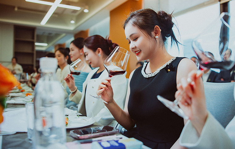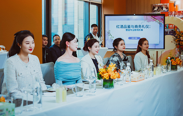 “一瓶酒所蘊(yùn)含的哲理,勝過世界上所有書籍?!卑退沟碌倪@句箴言,在彩蝶老師的課堂上,得到了生動(dòng)的詮釋。課程從紅酒基礎(chǔ)知識(shí)出發(fā),帶領(lǐng)學(xué)員走進(jìn)葡萄酒的類型與分類,建立專業(yè)的品鑒認(rèn)知;在酒杯選擇環(huán)節(jié),她細(xì)致剖析不同杯型的設(shè)計(jì)原理與適用場景,讓學(xué)員明白——一只恰當(dāng)?shù)木票?,是對酒本身的尊重,也是對席間人的體貼。商務(wù)選酒禮儀環(huán)節(jié),彩蝶老師結(jié)合宴請、洽談、慶典等不同場景,傳授選酒策略與分寸把握;在倒酒與侍酒的實(shí)操中,從持杯姿勢到倒酒分寸、從敬酒順序到言行規(guī)范,每一個(gè)細(xì)節(jié)都在反復(fù)演練中內(nèi)化為身體記憶。學(xué)員們不僅掌握了專業(yè)的品鑒方法,更在微醺中體悟到:真正的高級,是在推杯換盞間依然保持的從容與分寸感;而每一次舉杯,都是一次慢下來欣賞生活、照見自己的機(jī)會(huì)。精彩的講解讓學(xué)員在掌握品鑒方法的同時(shí),習(xí)得商務(wù)社交的從容分寸。大家不僅將紅酒禮儀內(nèi)化為職業(yè)素養(yǎng),更懂得——職場中的每一次舉杯,都是一次無聲的表達(dá);每一分得體的分寸感,都在為專業(yè)形象增添值得信任的份量。