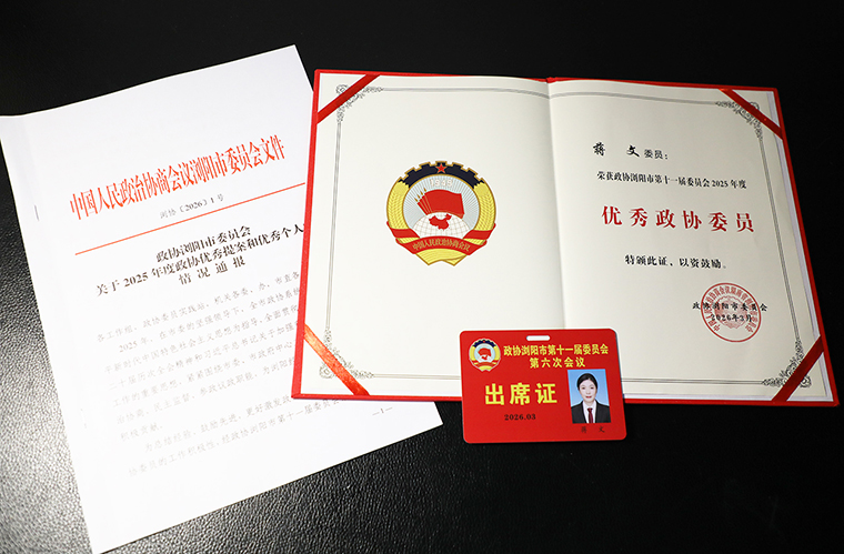 2026年3月23—25日,中國(guó)人民政治協(xié)商會(huì)議瀏陽市第十一屆委員會(huì)第六次會(huì)議在歐陽予倩大劇院召開。中共長(zhǎng)沙市委常委、瀏陽市委書記肖正波,中共瀏陽市委副書記、代市長(zhǎng)戴水文,中共瀏陽市委副書記、統(tǒng)戰(zhàn)部部長(zhǎng)王磊,瀏陽市人大常委會(huì)主任邱山東,市政協(xié)主席秦躍平,市級(jí)領(lǐng)導(dǎo)孟立祥、孫春華、胡偉平、李愛民、周耀輝、唐安石、謝波、張嫻、黃剛、董勇等在主席臺(tái)就座。瀏陽市政協(xié)副主席涂向陽、陳靜、鄧華、王持、呂立生,市政協(xié)歷屆主席,市政協(xié)常務(wù)委員在主席臺(tái)就座。瀏陽市政協(xié)委員、綠之韻集團(tuán)常務(wù)副總經(jīng)理蔣文參加會(huì)議。