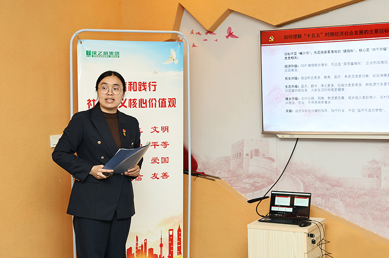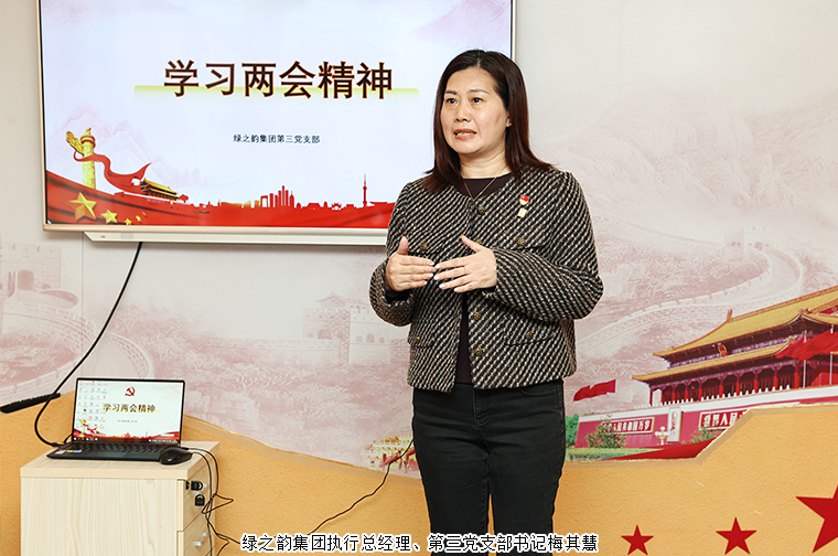 會(huì)上,綠之韻集團(tuán)執(zhí)行總經(jīng)理、第三黨支部書記梅其慧就學(xué)習(xí)內(nèi)容分享了心得體會(huì)。結(jié)合兩會(huì)精神,她表示在世界格局復(fù)雜多變的背景下,我們要珍惜來之不易的安定環(huán)境,以確定性應(yīng)對(duì)不確定性,在明確戰(zhàn)略方向的前提下,持續(xù)提升服務(wù)質(zhì)量與管理水平,推動(dòng)企業(yè)穩(wěn)健發(fā)展。她希望大家將每次學(xué)習(xí)成果真正融入日常工作,做到學(xué)以致用、知行合一。