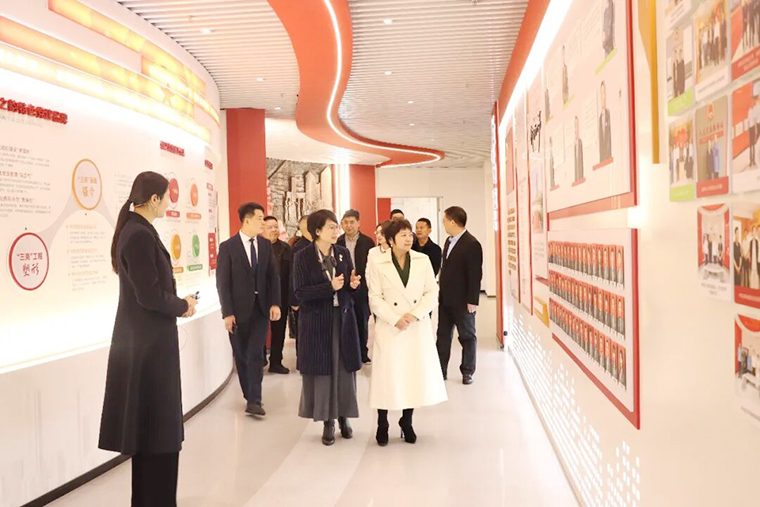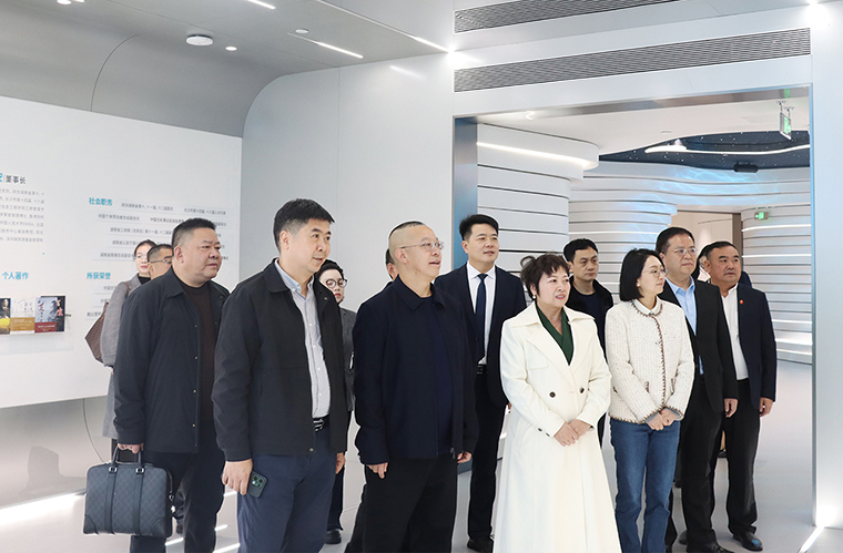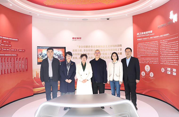 調(diào)研組一行循著企業(yè)發(fā)展脈絡(luò),先后參觀了綠之韻中心數(shù)智化科技展廳、黨建教育陣地、人大代表聯(lián)絡(luò)站及政協(xié)委員工作室等核心區(qū)域,進(jìn)行了全方位、深層次的實地考察。在數(shù)智化科技展廳內(nèi),“水之道” 設(shè)計理念將東方 “上善若水” 的哲學(xué)智慧與前沿數(shù)字技術(shù)深度融合,通過沉浸式交互系統(tǒng),全面展現(xiàn)企業(yè)發(fā)展歷程、全鏈條產(chǎn)品體系、行業(yè)領(lǐng)先的科研成果,以及在公益助學(xué)、鄉(xiāng)村振興等領(lǐng)域的扎實實踐,立體呈現(xiàn)出企業(yè)的創(chuàng)新活力、產(chǎn)業(yè)實力與社會擔(dān)當(dāng)。在黨建教育陣地,劉云書記介紹了綠之韻自2006年成立黨支部以來,構(gòu)建的以黨組織為核心、工會與公益基金會協(xié)同聯(lián)動的黨建工作新生態(tài),系統(tǒng)闡釋特色黨建工作體系,彰顯黨建與公司治理深度融合為企業(yè)發(fā)展注入的強(qiáng)勁紅色動能。在政協(xié)委員工作室,胡國安董事長重點介紹了該陣地作為港澳委員聯(lián)絡(luò)站、委員聯(lián)系群眾平臺,以 “書香 + 履職” 模式傾聽民聲、服務(wù)群眾的創(chuàng)新舉措與實踐成效。