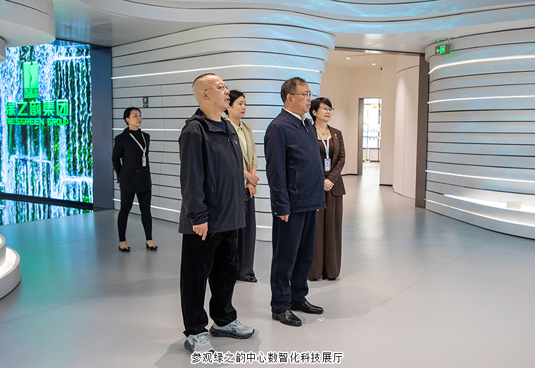 調(diào)研組一行先后參觀了綠之韻中心數(shù)智化科技展廳、黨建教育陣地及政協(xié)委員工作室。數(shù)智化科技展廳以“水之道”文化為核心設(shè)計(jì)理念,融合東方哲學(xué)智慧與西方先進(jìn)技術(shù),通過(guò)數(shù)字化互動(dòng)系統(tǒng)全面展現(xiàn)了企業(yè)發(fā)展歷程、企業(yè)文化、全鏈條產(chǎn)品體系、核心科研突破及公益足跡。