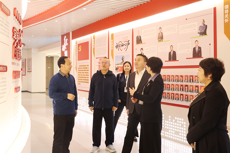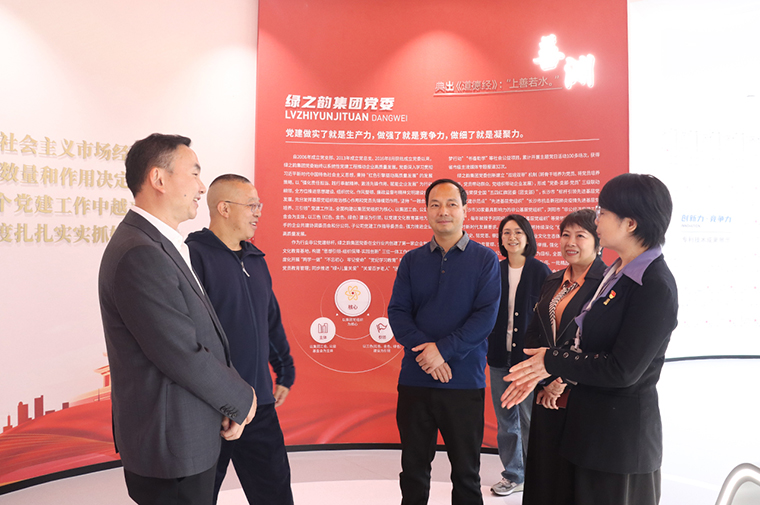 調(diào)研組一行先后參觀了綠之韻中心數(shù)智化科技展廳、黨建教育陣地、人大代表聯(lián)絡(luò)站及政協(xié)委員工作室等核心區(qū)域。在數(shù)智化科技展廳內(nèi),“水之道”設(shè)計(jì)理念將東方“上善若水”的哲學(xué)智慧與前沿?cái)?shù)字技術(shù)深度融合,通過沉浸式交互系統(tǒng),全面展現(xiàn)企業(yè)發(fā)展歷程、全鏈條產(chǎn)品體系、行業(yè)領(lǐng)先的科研成果,以及在公益助學(xué)、鄉(xiāng)村振興等領(lǐng)域的扎實(shí)實(shí)踐,立體呈現(xiàn)出企業(yè)的創(chuàng)新活力、產(chǎn)業(yè)實(shí)力與社會擔(dān)當(dāng)。在黨建教育陣地,劉云書記詳細(xì)介紹了企業(yè)自2006年成立黨支部以來,逐步構(gòu)建的以黨組織為核心、工會與公益基金會協(xié)同的黨建新生態(tài),系統(tǒng)闡述了“三色三有三亮”建設(shè)及“一融合、雙培養(yǎng)、三引領(lǐng)、四堅(jiān)持、五到位、六強(qiáng)化”工作法。在政協(xié)委員工作室,胡國安董事長重點(diǎn)介紹了該陣地作為港澳委員聯(lián)絡(luò)站、委員聯(lián)系群眾平臺,以“書香+履職”模式傾聽民聲、服務(wù)群眾的創(chuàng)新舉措與實(shí)踐成效。