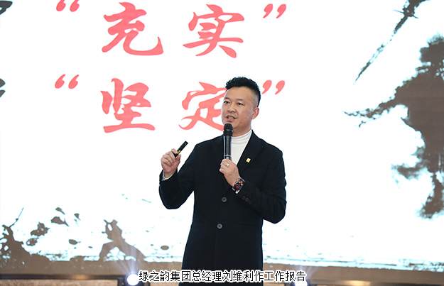 總結(jié)表彰會在全體綠之韻人慷慨激昂地宣讀《綠之韻工作宣言》中拉開序幕。會上,綠之韻集團(tuán)總經(jīng)理劉維利就2018年市場工作總結(jié)及2019年度綠之韻集團(tuán)的發(fā)展規(guī)劃作主題報(bào)告?;仨?018年,是凝聚力量、勇創(chuàng)佳績的一年。展望2019,綠之韻人追夢前行,藍(lán)圖繪就,未來可期。