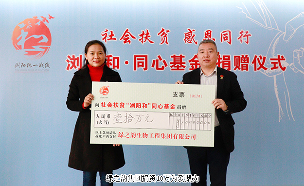 胡均安副總裁在捐贈活動現(xiàn)場表示,在瀏陽這塊紅色沃土,綠之韻生根發(fā)芽、茁壯成長,受到黨和政府以及各級部門的關(guān)懷與支持?!爸赂凰荚础⒏欢歼M”是綠之韻一直堅持的企業(yè)發(fā)展理念,社會扶貧“瀏陽和·同心基金”的成立為我們參與社會扶貧提供了新的途徑,我們將一如既往地積極承擔企業(yè)社會責任,在企業(yè)健康發(fā)展的同時,努力讓企業(yè)的發(fā)展成果惠及更多需要幫助的人,用行動和愛心與瀏陽這座城市共同成長與發(fā)展!