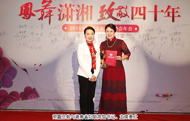 建功新時(shí)代,綻放“她風(fēng)采”,鳳舞瀟湘正當(dāng)時(shí)。2018年11月23日,湖南省女企業(yè)家協(xié)會2018年度工作會議暨年度表彰頒獎(jiǎng)大會在長沙召開,湖南省婦聯(lián)黨組書記、主席姜欣,湖南省女企業(yè)家協(xié)會會長張海霞,湖南省工商聯(lián)女企業(yè)家商會會長吳建平,湖南省工商聯(lián)女企業(yè)家商會常務(wù)副會長,綠之韻集團(tuán)董事總裁、綠之韻公益基金會理事長勞嘉,綠之韻集團(tuán)黨委書記劉云,中國內(nèi)地著名主持人仇曉等領(lǐng)導(dǎo)嘉賓出席會議,與來自三湘四水的女企業(yè)家們歡聚一堂,訴情、抒懷、感恩,向改革開放四十周年獻(xiàn)禮。