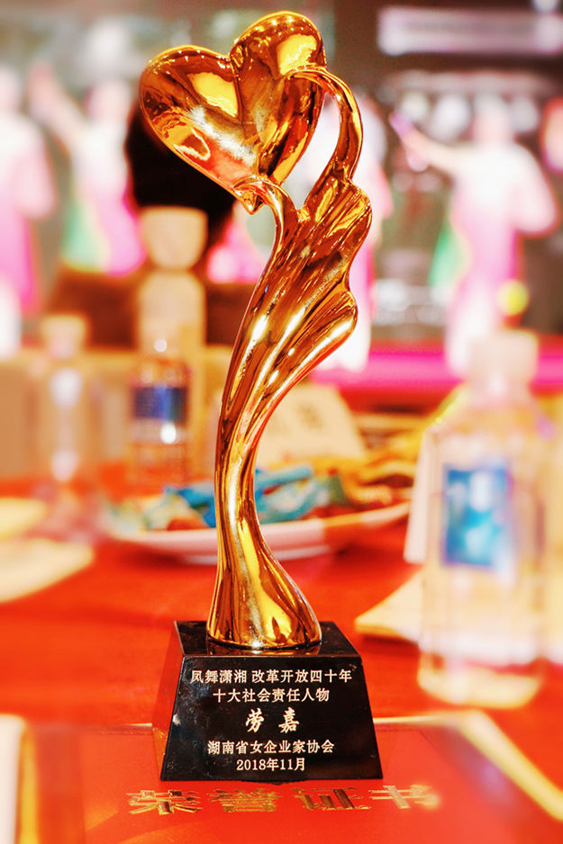 大愛、擔(dān)當(dāng)和責(zé)任感是判斷一個(gè)企業(yè)家是否可以稱之為“社會企業(yè)家”的重要標(biāo)準(zhǔn)。身為綠之韻公益基金會理事長,勞嘉總裁先后獲得“社會責(zé)任之星”“杰出創(chuàng)業(yè)女性”“慈善女企業(yè)家”等多項(xiàng)榮譽(yù)稱號,她在發(fā)表獲獎(jiǎng)感言時(shí)表示:一個(gè)熱衷公益的企業(yè)一定是一個(gè)具有社會責(zé)任感的企業(yè),也是一個(gè)值得信賴的企業(yè)。綠之韻集團(tuán)成立至今始終秉承著“關(guān)愛生命、造福人類”的公益理念,把公益慈善置于企業(yè)發(fā)展戰(zhàn)略高度,踴躍參與并傾情捐助了100多項(xiàng)社會公益慈善事業(yè),涉及希望工程、賑災(zāi)濟(jì)困、興教助學(xué)、醫(yī)療衛(wèi)生、修路飲水、養(yǎng)老醫(yī)療等多個(gè)領(lǐng)域,用實(shí)際行動履行著個(gè)人及企業(yè)應(yīng)盡的責(zé)任和義務(wù),不遺余力地為社會貢獻(xiàn)著自己的力量。未來,集團(tuán)將繼續(xù)積極履行企業(yè)社會責(zé)任,進(jìn)一步增強(qiáng)事業(yè)心、責(zé)任心、使命感,大力培育“造血”功能,積極踐行產(chǎn)業(yè)化扶貧新模式,并不斷追求扶志扶智和扶貧質(zhì)量,最大范圍地凝聚起扶貧企業(yè)合力,努力讓更多家庭實(shí)現(xiàn)脫貧,讓更多貧困婦女擁有美好生活,給更多需要幫助的人送溫暖、找出路、謀發(fā)展,真正承擔(dān)起扶貧攻堅(jiān)這份沉甸甸的歷史擔(dān)當(dāng)。湖南省女企業(yè)家協(xié)會也將充分發(fā)揮協(xié)會的特點(diǎn)和優(yōu)勢,努力把更多的女企業(yè)家聚集在協(xié)會周圍,在黨和政府的領(lǐng)導(dǎo)下,鳳舞瀟湘,創(chuàng)造更精彩的事業(yè)。