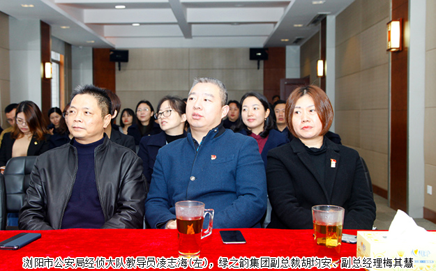 2018年11月13日,瀏陽(yáng)市公安局法律知識(shí)課堂走進(jìn)綠之韻。瀏陽(yáng)市公安局經(jīng)偵大隊(duì)教導(dǎo)員凌志海,瀏陽(yáng)市公安局經(jīng)偵大隊(duì)主任科員彭建清,綠之韻集團(tuán)副總裁胡均安,綠之韻集團(tuán)副總經(jīng)理梅其慧以及集團(tuán)總部員工共同參加了此次活動(dòng)。