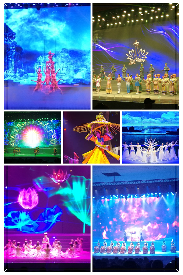 乘坐專機一抵達越南峴港,綠之韻家人們感受到了屬于峴港的熱辣風(fēng)情?!恩攘s港秀》是峴港唯一的一臺大型越南風(fēng)情文藝歌舞秀,邀請了越南著名舞蹈藝人進行演出,演出中傳遞出越南獨有的斗笠、蓮花、奧黛女子、占婆等文化元素,給家人們帶來了一場精彩紛呈的大型視覺盛宴,緩解了長途飛行的疲乏。