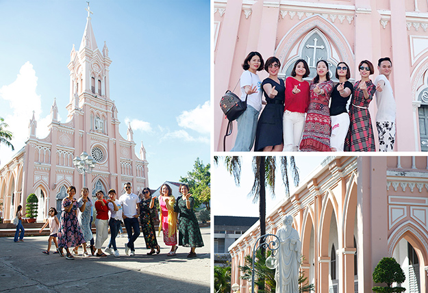 粉紅教堂是峴港最大的歐式天主教堂大教堂,墻外鑲嵌著中世紀(jì)風(fēng)格的彩色玻璃,糖果般的粉紅色外觀幾乎成為峴港景點的標(biāo)志,每一位來到峴港的游客都會在這里留下他們的足跡。