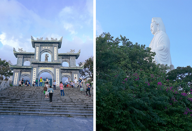 在峴港,最為顯著的建筑不是高樓大廈,而是位于山茶半島靈應(yīng)寺前的一座白玉觀音像。觀音像高67米,是整個東南最高的觀音像。綠之韻家人們在觀音像前駐足停留許久,仿佛在這里許下了對自己、對家人、對事業(yè)、對未來最美好的祝愿……