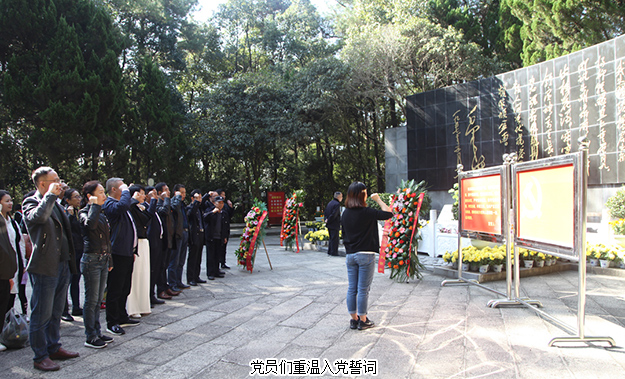 上午十時(shí)許,綠之韻集團(tuán)的黨員們驅(qū)車抵達(dá)開慧鎮(zhèn)。黨員們首先來到了楊開慧烈士的陵園前進(jìn)行悼念。陵園位于開慧紀(jì)念館右側(cè)的棉花坡上,三面環(huán)山,墓的兩側(cè),各豎有漢白玉碑一塊。陵墓前,黨員們神情肅穆,分列為三排,面向陵園鞠躬默哀。隨后,綠之韻集團(tuán)副總裁胡均安,黨委書記劉云代表集團(tuán)黨委向楊開慧烈士獻(xiàn)上花籃。