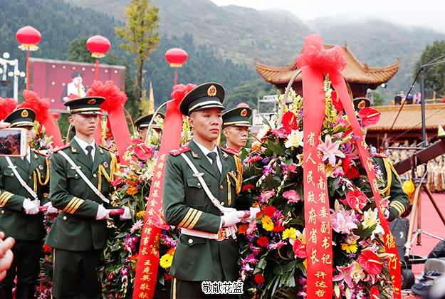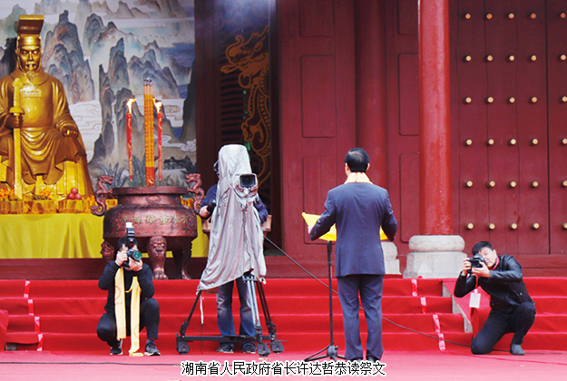 上午9時(shí)許,全場(chǎng)凝神肅立,氣氛莊嚴(yán),在悠揚(yáng)的古樂(lè)下,主祭人向舜祖上香及各界嘉賓依次向舜帝敬獻(xiàn)花籃 ; 全體參祭人員向舜帝深鞠三躬,虔誠(chéng)致敬,深情緬懷舜帝的地德天功、浩瀚恩澤。主祭人許達(dá)哲恭讀《祭舜帝文》,頌揚(yáng)著舜帝豐功偉績(jī),表達(dá)三湘兒女弘揚(yáng)舜帝精神,傳承中華文明,凝心聚力,砥礪奮進(jìn),為實(shí)現(xiàn)“兩個(gè)一百年”戰(zhàn)略目標(biāo),弘揚(yáng)中華優(yōu)秀傳統(tǒng)文化,建設(shè)富饒美麗幸福新湖南,譜寫中華民族偉大復(fù)興中國(guó)夢(mèng)的湖南篇章而努力奮斗的雄心壯志。舜輝天下, 光照日月,讀畢祭文,許達(dá)哲將祭文帛書置于香爐中焚化,告慰舜帝英靈。禮炮、古樂(lè)再次響起,祭典儀式圓滿告成。