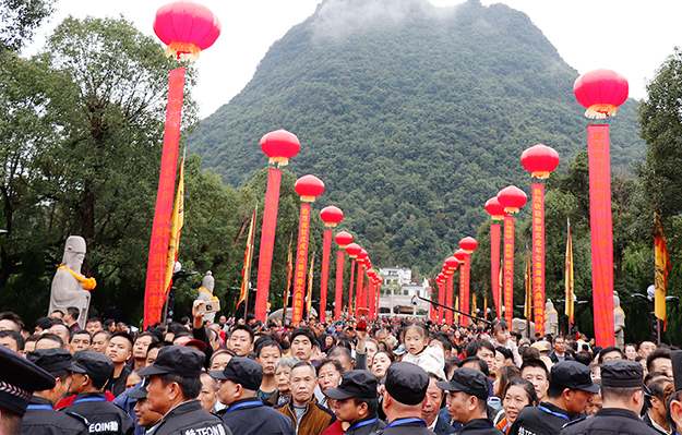 “九嶷山上白云飛,帝子乘風(fēng)下翠微?!?018年10月26日,戊戌年公祭舜帝大典于在湖南永州寧遠(yuǎn)縣九嶷山舜帝陵盛大開(kāi)啟,大典以“弘揚(yáng)中華優(yōu)秀傳統(tǒng)文化,建設(shè)富饒美麗幸福新湖南”為主題,旨在祭奠先祖神靈舜帝,為中華優(yōu)秀傳統(tǒng)文化的傳承蓄力。湖南省人民政府省長(zhǎng)許達(dá)哲進(jìn)行主祭,湖南省政協(xié)原主席、湖南省九嶷山舜帝陵基金會(huì)原理事長(zhǎng)王克英,省人大常委會(huì)黨組書記、副主任劉蓮玉,省人民政府副省長(zhǎng)吳桂英,省政協(xié)副主席賀安杰,省軍區(qū)副政治委員喻軍,省人大常委會(huì)原副主任、湖南省舜文化研究會(huì)榮譽(yù)會(huì)長(zhǎng)唐之享等領(lǐng)導(dǎo)和港、澳、臺(tái)及海外舜裔宗親代表以及對(duì)舜帝陵建設(shè)做出重大貢獻(xiàn)的知名人士、各界代表應(yīng)邀出席?!逗先?qǐng)?bào)》、湖南衛(wèi)視、紅網(wǎng)、鳳凰網(wǎng)、騰訊大湘網(wǎng)、華聲在線、永州新聞網(wǎng)等多家媒體對(duì)本次公祭舜帝大典進(jìn)行現(xiàn)場(chǎng)報(bào)道。湖南省工商聯(lián)(總商會(huì))副會(huì)長(zhǎng)、綠之韻集團(tuán)董事長(zhǎng)胡國(guó)安受邀出席大典,與來(lái)自世界各地的華夏兒女集結(jié)福地寧遠(yuǎn),帶著一顆赤誠(chéng)之心,思追古舜,致祭舜帝重華。