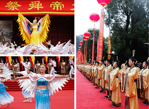 從2005年開(kāi)始第一屆,2009年、2012年和2015年先后四次舉行湖南省公祭舜帝大典。三年一祭,本屆公祭舜帝大典共分為三大儀程展示。龍獅歡騰,嗩吶高奏,瑤家阿哥阿妹,唱著迎客山歌,跳著瑤族長(zhǎng)鼓,敬獻(xiàn)瓜簞酒,百人腰鼓隊(duì)敲打著激越的鼓點(diǎn),迎接前來(lái)祭祀的賓客,儀式中無(wú)一不展現(xiàn)出寧遠(yuǎn)人熱情好客的民情風(fēng)俗。