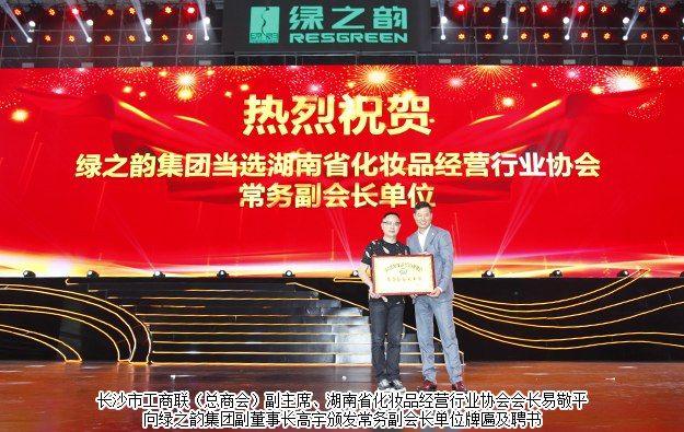 在此次大會上,湖南省化妝品經營行業(yè)協(xié)會授予綠之韻集團為其常務副會長單位。同時綠之韻集團副董事長高宇先生,也將當選為協(xié)會專職副會長。