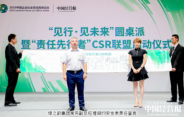 新常態(tài)下,來自經(jīng)濟(jì)系統(tǒng)、自然系統(tǒng)和社會系統(tǒng)的挑戰(zhàn),給企業(yè)社會責(zé)任帶來了新的思考:當(dāng)前企業(yè)可持續(xù)發(fā)展的著力點(diǎn)在哪里?如何激發(fā)企業(yè)內(nèi)在動力,打好精準(zhǔn)扶貧攻堅(jiān)戰(zhàn)?如何傳播責(zé)任理念,探索責(zé)任創(chuàng)新,洞見社會責(zé)任發(fā)展新未來?本次論壇設(shè)立“見行·見未來”圓桌派高端閉門會,邀請綠之韻集團(tuán)等30多家國內(nèi)外知名企業(yè)的CSR領(lǐng)袖,深入探討企業(yè)社會責(zé)任發(fā)展中的微觀問題,探索以多重價(jià)值促進(jìn)企業(yè)管理、社會責(zé)任品牌化路徑、公益實(shí)踐的理念和管理創(chuàng)新。同時(shí),論壇現(xiàn)場隆重舉行“責(zé)任先行者”CSR聯(lián)盟啟動儀式,30多位先鋒企業(yè)的CSR領(lǐng)袖共同發(fā)表責(zé)任宣言,成立CSR聯(lián)盟,以聚合的力量推動中國企業(yè)社會責(zé)任進(jìn)步。