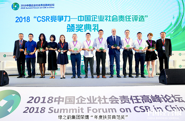 本次論壇通過對參選企業(yè)的調(diào)研和對上榜企業(yè)的案例研究,深入剖析和總結(jié)中國企業(yè)在社會責(zé)任公益行動的成果和經(jīng)驗(yàn),樹立參選社會責(zé)任企業(yè)及領(lǐng)導(dǎo)人的典范形象,給予行業(yè)一定的借鑒意義。論壇頒獎(jiǎng)典禮上,集中頒發(fā)了可持續(xù)發(fā)展示范企業(yè)獎(jiǎng)、扶貧典范獎(jiǎng)、社會關(guān)懷典范企業(yè)獎(jiǎng)等年度獎(jiǎng)項(xiàng),綠之韻集團(tuán)榮獲“年度扶貧典范獎(jiǎng)”殊榮。