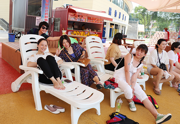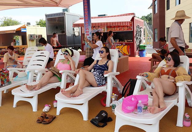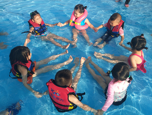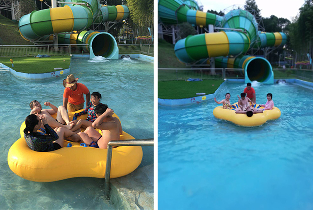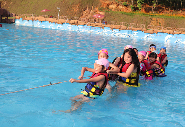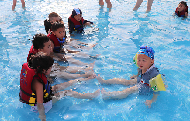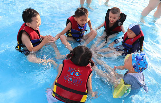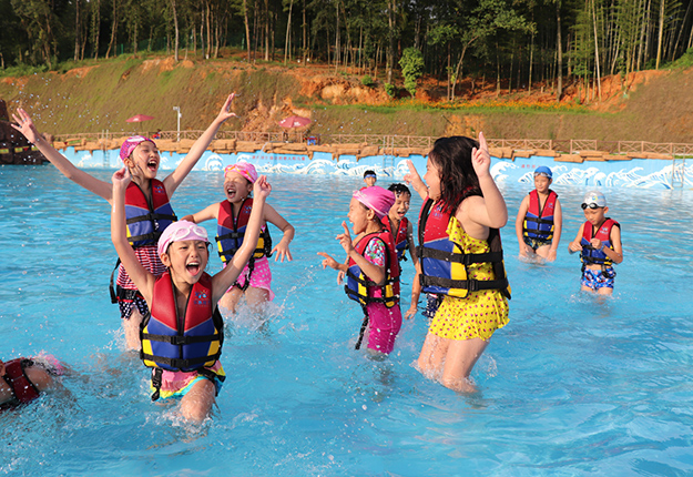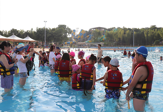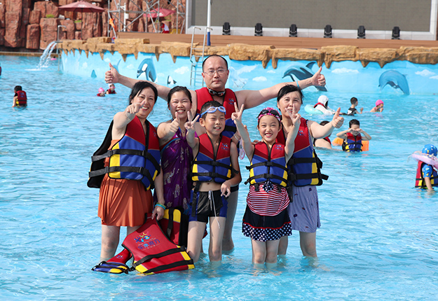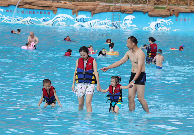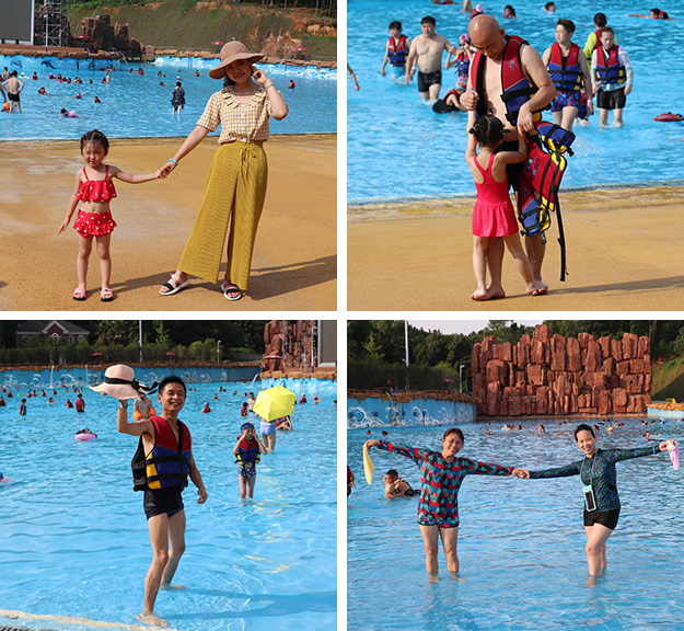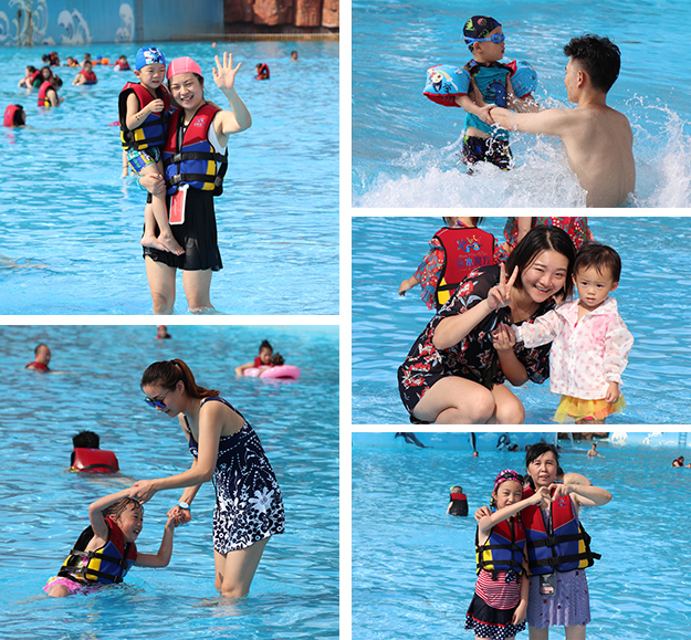 來到園內(nèi),家人們換上了美美的泳裝與孩子們在水中嬉戲。在水池中,你可以看到媽媽拉著女兒的手,手把手教孩子戰(zhàn)勝恐懼學會游泳;浪潮涌來,爸爸守在孩子身后,緊緊抱住孩子的腰,成為寶貝最堅強的護盾;爸爸與女兒從水中上來,地面被烈日曬得滾燙,爸爸讓女兒踩在自己的腳上一步一步向前走……家人們與孩子在水中盡情享受著這難得的悠閑下午時光。