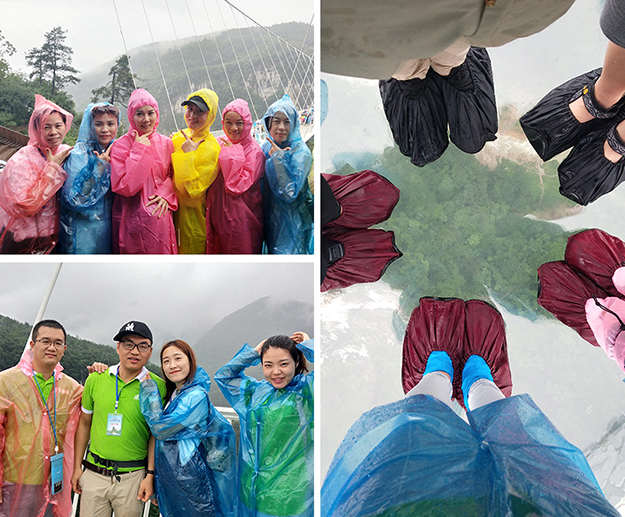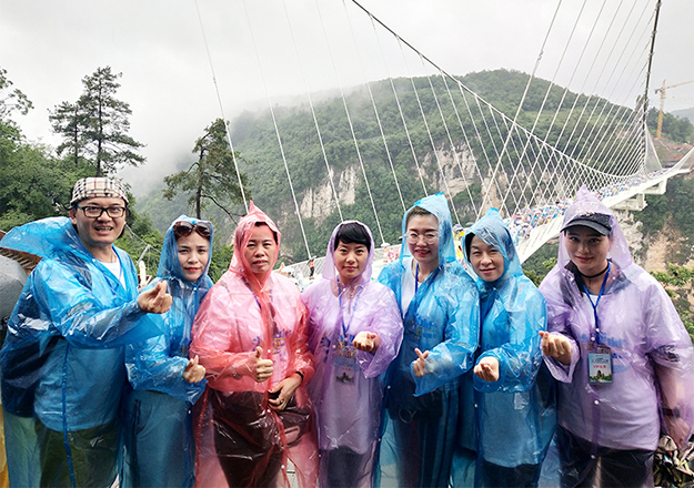 集山、水、洞、峽、橋、瀑于一身的張家界大峽谷,綠之韻營銷精英們在這里挑戰(zhàn)世界最高最長首座斜拉式高山峽谷玻璃橋——“云天渡”,細雨蒙蒙,漫步天上人間,別有一番滋味,帶著一顆感恩的心,從這頭走到那頭、走過青絲到白發(fā),感受橋的刺激、湖的清澈、山的倒蘸、水的秀麗、情的溫柔,真正做到超脫塵世、忘卻人間。