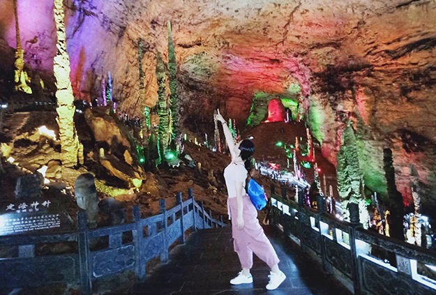 “世界溶洞奇觀”黃龍洞規(guī)模之大、內容之全、景色之美,包含了溶洞學的所有內容。綠之韻家人感受龐大的立體結構洞穴空間、豐富的溶洞景觀、水陸兼?zhèn)涞挠斡[觀光線路,洞內鐘乳石種類繁多,潔白晶瑩的鐘乳石、石筍、石柱、石幔、石花、卷曲石、石珍珠、石珊瑚等玲瓏剔透,游覽天仙水瀑布、花果山、龍宮大廳、定海神針,每一根石筍都令綠之韻家人驚嘆稱奇。