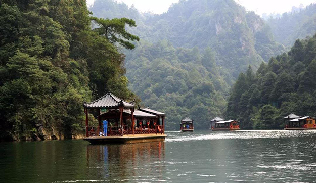 世界自然遺產——寶峰湖:被稱為“世界湖泊經典”,屬張家界地貌內自然山水與人文民俗相結合的湖泊型自然風景區(qū)。寶峰湖風景區(qū)集山水于一體,融民俗風情于一身,尤以奇秀的高峽平湖絕景、“飛流直下三千尺”的寶峰飛瀑、神秘的深山古寺聞名。乘船游覽,欣賞仙女照鏡、孔雀開屏、金蟾含月等景點,船在湖中游,綠之韻營銷精英與土家阿哥、阿妹對唱山歌。