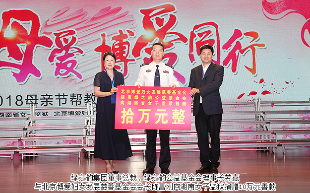 溫情五月天,感恩母親節(jié)。2018年5月12日,綠之韻“牽手母愛(ài)·綠韻同行”愛(ài)心活動(dòng)暨關(guān)愛(ài)貧困母親活動(dòng)走進(jìn)湖南省女子監(jiān)獄。國(guó)家司法部監(jiān)獄管理局處長(zhǎng)李紅衛(wèi),北京博愛(ài)婦女發(fā)展慈善基金會(huì)會(huì)長(zhǎng)陳富剛以及湖南省女子監(jiān)獄領(lǐng)導(dǎo)出席活動(dòng)。綠之韻集團(tuán)董事總裁、綠之韻公益基金會(huì)理事長(zhǎng)勞嘉,綠之韻集團(tuán)常務(wù)副總經(jīng)理胡均安,黨委書記劉云,綠之韻公益基金會(huì)秘書長(zhǎng)蔣文帶領(lǐng)綠之韻愛(ài)心志愿者與百余名女性服刑人員、家屬零距離接觸,并向湖南省女子監(jiān)獄捐贈(zèng)10萬(wàn)元愛(ài)心善款。