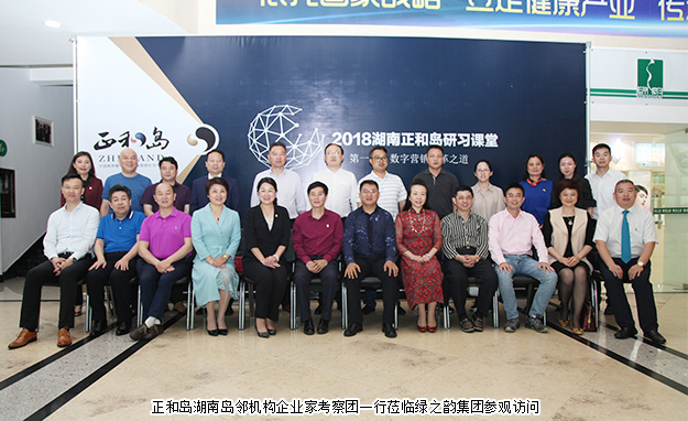 2018年4月22日,正和島湖南島鄰機(jī)構(gòu)企業(yè)家考察團(tuán)一行30多人蒞臨綠之韻集團(tuán)參觀訪問,并參加正和島湖南島鄰機(jī)構(gòu)2018年研習(xí)課堂(第一期),共話“數(shù)字營銷”變革之道。正和島首席經(jīng)濟(jì)學(xué)家、正和島湖南島鄰機(jī)構(gòu)顧問王林,正和島數(shù)字營銷部落秘書長、著名商業(yè)觀察家、品牌營銷戰(zhàn)略創(chuàng)意專家劉逸春,正和島湖南島鄰機(jī)構(gòu)主席、大漢控股集團(tuán)有限公司董事長傅勝龍等島親、嘉賓蒞臨參觀訪問;正和島湖南島鄰機(jī)構(gòu)執(zhí)行秘書長、綠之韻集團(tuán)聯(lián)合創(chuàng)始人勞嘉,綠之韻集團(tuán)總經(jīng)理劉維利,綠之韻集團(tuán)常務(wù)副總經(jīng)理胡均安全程陪同參觀。