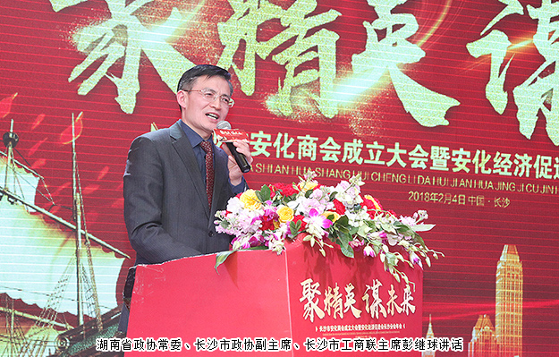安化縣人民政府縣長肖義代表安化縣委縣政府、縣人大、縣政協(xié)向所有在外的安化老鄉(xiāng)致以誠摯的問候。他表示,安化作為一座正在飛速發(fā)展中的縣城,也是一片充滿生機活力的創(chuàng)新創(chuàng)業(yè)熱土,需要安化籍企業(yè)家們?nèi)翰呷毫?,將家鄉(xiāng)建設(shè)的更好。安化縣委縣政府高度重視安化籍企業(yè)家返鄉(xiāng)創(chuàng)業(yè)工作,希望大家積極返鄉(xiāng)創(chuàng)業(yè),攜手共創(chuàng)安化的美好明天。湖南省政協(xié)常委、長沙市政協(xié)副主席、長沙市工商聯(lián)主席彭繼球在致辭中對長沙市安化商會的成立表示祝賀并對胡國安董事長在精準扶貧方面做出的貢獻給予了高度肯定。他希望,未來長沙市安化商會在胡國安會長的帶領(lǐng)下,能夠緊緊抓住發(fā)展的機遇,完善商會功能,發(fā)揮商會作用,彰顯商會價值,真正做到“民主辦會、服務(wù)立會、團結(jié)興會、文化強會、黨建促會”,成功躋身一流地方商會行列。