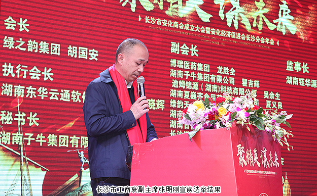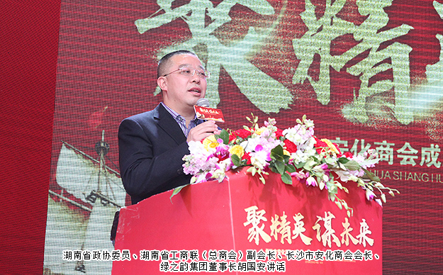 會上,湖南省政協(xié)委員、湖南省工商聯(lián)(總商會)副會長、長沙市安化商會會長、綠之韻集團董事長胡國安發(fā)表致辭。他首先向一直以來為長沙市安化商會的籌備付出了努力與貢獻的企業(yè)和人士致以最衷心的感謝。他表示,2018年商會將圍繞創(chuàng)建“團結(jié)型商會、服務(wù)型商會、創(chuàng)新型商會、學(xué)習(xí)型商會、奉獻型商會”的發(fā)展目標,打造“道相同,利相共,心相通”的商會文化,不斷推進商會各項工作邁上新臺階;積極為長沙、安化兩地政府和廣大會員交流合作搭建發(fā)展平臺;致力于長沙、安化兩地精準扶貧等社會公益慈善事業(yè);廣泛參與家鄉(xiāng)回歸工程,在促進長沙、安化兩地經(jīng)貿(mào)交流過程中發(fā)揮好橋梁紐帶作用,回饋社會、回報桑梓。同時,商會將努力為會員企業(yè)做好服務(wù),促進會員企業(yè)抱團合作;繼續(xù)發(fā)展會員隊伍,繼續(xù)抓好班子建設(shè)和學(xué)習(xí)培訓(xùn)工作,抓好商會宣傳工作,堅定信心,穩(wěn)重求進。他相信,未來在各級領(lǐng)導(dǎo)的正確指導(dǎo)下,在商會領(lǐng)導(dǎo)班子的共同努力下,在所有商會會員企業(yè)的互幫互助下,他將帶領(lǐng)新一屆領(lǐng)導(dǎo)班子堅持聯(lián)系企業(yè),服務(wù)會員,促進友好交往,互通商務(wù)信息,加強多方交流,形成協(xié)作機制,共謀發(fā)展之路,努力把商會打造成為有中國特色、長沙特征、安化特點的知名商會品牌。