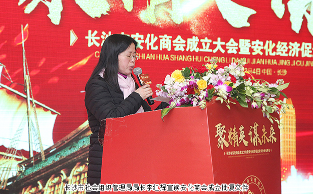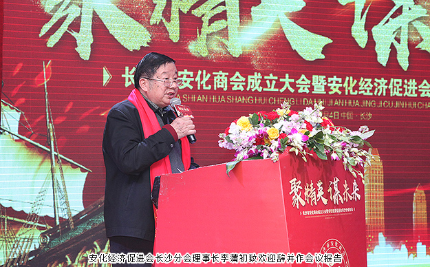 會議伊始,長沙市社會組織管理局局長李紅輝宣讀《長沙市民政局關(guān)于同意成立長沙市安化商會的行政許可決定》。安化經(jīng)濟促進會長沙分會理事長李蒲初致歡迎辭并作工作報告。他表示,長沙市安化商會的成立是全體安化籍企業(yè)家的一件大喜事,是搭建精誠合作、抱團發(fā)展,實現(xiàn)行業(yè)、區(qū)域大融合,增強在長安化老鄉(xiāng)凝聚力和向心力的平臺。未來,長沙市安化商會將為長沙的安化企業(yè)家構(gòu)建一個互幫互助、交流合作的平臺,為安化企業(yè)家在企業(yè)和政府之間建立一個橋梁和紐帶,發(fā)揮平臺優(yōu)勢,更好地服務(wù)企業(yè)、服務(wù)會員。原省公安廳黨委副書記、常務(wù)副廳長胡旭曦,原北京市公安局現(xiàn)役辦主任諶再來,原湖南省糧食局局長、黨組書記夏文星,原湖南省行業(yè)辦主任、黨組書記夏純玉等擔(dān)任商會顧問。