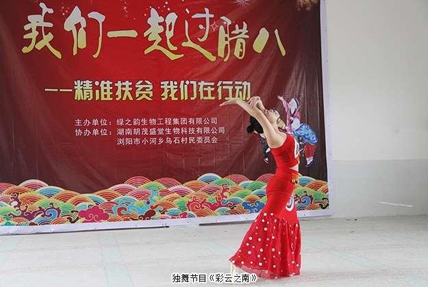 今天的“我們一起過臘八”活動內(nèi)容豐富,形式多樣,有綠之韻集團情感迸發(fā)的《精準(zhǔn)扶貧,我們在行動》朗誦,有充滿情懷的文藝歌舞《十送紅軍》,有精彩的獨舞節(jié)目《彩云之南》,有寓意十足的《精準(zhǔn)扶貧》小品,更有幫扶愛心企業(yè)與烏石村群眾互動配合游戲《愛的抱抱》。一個個精彩的節(jié)目,充分展示了大家昂揚樂觀、積極進(jìn)取的精神風(fēng)貌,溫暖著小河鄉(xiāng)的每一個村民,也為烏石村、乃至全鄉(xiāng)精準(zhǔn)扶貧工作注入了新的活力。小河鄉(xiāng)在黨中央“脫貧攻堅”春風(fēng)的吹拂下,在各級黨委政府的關(guān)心和幫助下,必將走向更加美好的明天!