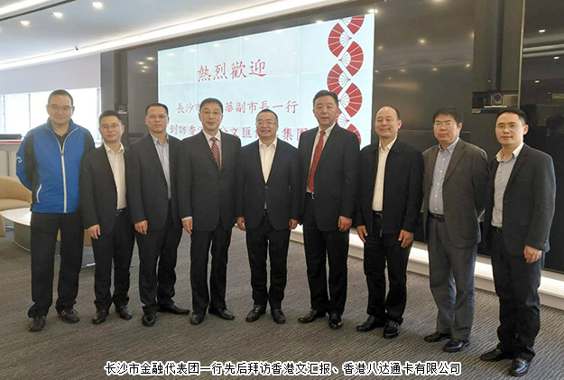 2018年1月15--16日,由香港特別行政區(qū)政府及香港貿(mào)易發(fā)展局共同主辦的“2018亞洲金融論壇(AFF)”在香港會議展覽中心成功舉行。中共長沙市委常委、副市長付勝華,長沙市委組織部副部長張白云,長沙市政府金融辦主任李曉斌等攜長沙市金融代表團參加會議。1月17日,“2018亞洲金融論壇(AFF)”圓滿落幕后,湖南省工商聯(lián)(總商會)副會長、香港湘都同鄉(xiāng)會名譽會長、香港長沙商會副會長、綠之韻集團董事長、綠韻控股集團董事局主席胡國安隨長沙市金融代表團一行專程赴香港文匯報、香港八達通卡有限公司、香港交易所等重點傳媒、企業(yè)和金融機構考察交流。