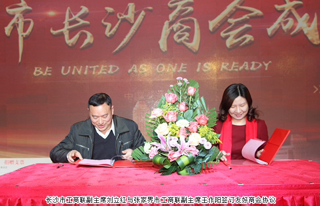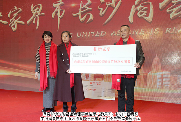 大會上,綠之韻集團黨委書記劉云、長沙市工商聯(lián)經(jīng)濟聯(lián)絡處處長黃羽代表湖南長沙光彩基金會、長沙市工商聯(lián)向張家界市貧困山區(qū)捐建價值50萬元的五個圖書書屋等;長沙市人民政府向張家界市長沙商會捐贈20萬元辦公經(jīng)費。長沙市工商聯(lián)與張家界市工商聯(lián)舉行了友好工商聯(lián)簽約儀式。成立大會還邀請了張家界本土藝人進行了精彩的文藝匯演,為大會增添了喜慶的氣氛。