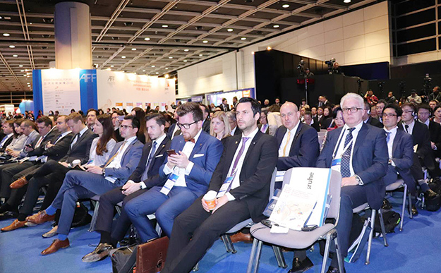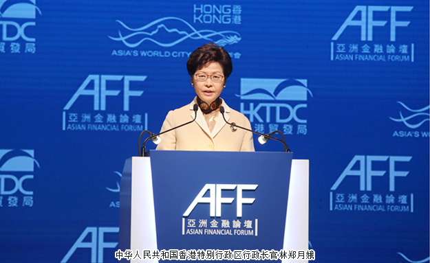 開幕式上,中華人民共和國(guó)香港特別行政區(qū)行政長(zhǎng)官林鄭月娥為大會(huì)致開幕辭。她在講話中說道,作為世界上最大的離岸人民幣市場(chǎng),有70%以上人民幣結(jié)算和交易的活動(dòng)都發(fā)生在香港。在過去十年中,港交所融資量和IPO交易量翻番,受到許多內(nèi)地公司青睞。她強(qiáng)調(diào)了中國(guó)內(nèi)地經(jīng)濟(jì)快速發(fā)展在全球體系中的重要性,香港一直以來也獲益于內(nèi)地經(jīng)濟(jì)的高速增長(zhǎng)。風(fēng)險(xiǎn)和機(jī)遇同在,香港不能固步自封,一定要把眼光放得更為長(zhǎng)遠(yuǎn),并且采取一致協(xié)調(diào)的政策,更好的發(fā)揮自身的長(zhǎng)處和強(qiáng)項(xiàng),探索新的發(fā)展機(jī)遇。當(dāng)前,尤其在“一國(guó)兩制”政策指導(dǎo)下,內(nèi)地和香港之間的聯(lián)系將比以往任何時(shí)候都更為緊密。她呼吁香港應(yīng)團(tuán)結(jié)各方力量,更好的促進(jìn)亞洲金融發(fā)展。目前香港已經(jīng)設(shè)立2億港幣的基金,來投資新興科技企業(yè)。未來,到2020年之前,香港預(yù)計(jì)培育150家金融創(chuàng)新或金融技術(shù)的機(jī)構(gòu)。