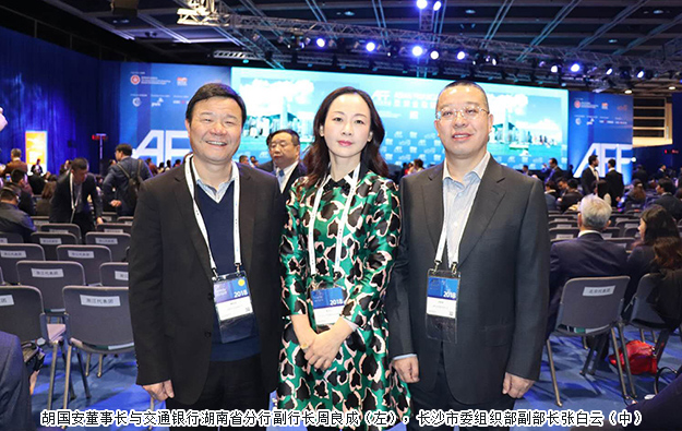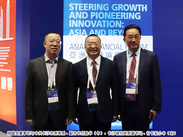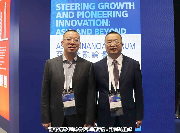 2018年1月15—16日,由香港特別行政區(qū)政府及香港貿(mào)易發(fā)展局共同主辦的“2018亞洲金融論壇”在香港會(huì)議展覽中心舉行。中華人民共和國(guó)香港特別行政區(qū)行政長(zhǎng)官林鄭月娥,香港貿(mào)易發(fā)展局主席羅康瑞,中國(guó)證券監(jiān)督管理委員會(huì)副主席姜洋;俄羅斯第一副總理舒瓦洛夫,美國(guó)第76任財(cái)政部長(zhǎng)杰克盧,國(guó)際貨幣基金組織第一副總裁大衛(wèi)?利普頓,亞洲開發(fā)銀行行長(zhǎng)中尾武彥,盧森堡財(cái)政部長(zhǎng)皮埃爾·格拉美亞,亞洲基礎(chǔ)設(shè)施投資銀行行長(zhǎng)、董事會(huì)主席金立群,匯豐控股有限公司集團(tuán)行政總裁歐智華等100多位來自全球各地的財(cái)金官員、經(jīng)濟(jì)學(xué)家、跨國(guó)企業(yè)管理層和財(cái)金專家出席會(huì)議。中共長(zhǎng)沙市委常委、副市長(zhǎng)付勝華,長(zhǎng)沙市委組織部副部長(zhǎng)張白云,長(zhǎng)沙市政府金融辦主任李曉斌等攜長(zhǎng)沙市金融代表團(tuán)參加會(huì)議。湖南省工商聯(lián)(總商會(huì))副會(huì)長(zhǎng)、香港湘都同鄉(xiāng)會(huì)名譽(yù)會(huì)長(zhǎng)、香港長(zhǎng)沙商會(huì)副會(huì)長(zhǎng)、綠之韻集團(tuán)董事長(zhǎng)、綠韻控股集團(tuán)董事局主席胡國(guó)安受邀參加會(huì)議。