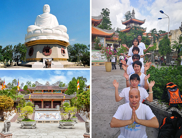 芽莊有一座以中文命名的佛教寺廟龍山寺,很多僧侶在這里修行。龍山寺是芽莊最大的寺院,始建于1889年,經(jīng)過(guò)數(shù)次裝修、重建,成為今天的外貌,寺內(nèi)有金色巨龍雕花裝飾、有蓮花池、佛教壁畫(huà)等。從正殿右邊,上 152 個(gè)石階后,就會(huì)看到高達(dá) 24 米的一座大佛。在芽莊市區(qū)任何地方都能看見(jiàn)這座巨大的白色大佛,安坐于蓮花之上,俯視眾生的歡樂(lè)與煩擾。綠之韻精英們領(lǐng)略它獨(dú)特的文化積淀和人文景觀,感受著越南人民的虔誠(chéng)信仰與生活熱情。