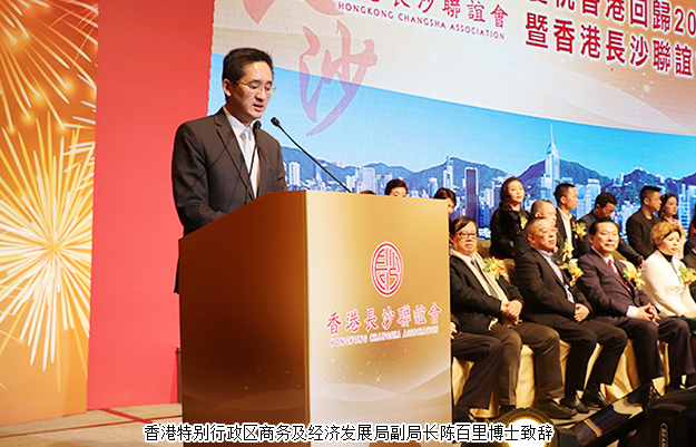 香港特區(qū)商務及經(jīng)濟發(fā)展局副局長陳百里致辭中對香港長沙聯(lián)誼會成立一周年表示祝賀。香港與長沙兩地的合作在過去已取得豐碩成果,香港不僅是湖南的第一大外資來源地,也是湖南對外出口的第一大市場,2016年,在湖南省的港資企業(yè)比2015年增加超過25%,合同投資同比增長接近90%,實際使用投資同比增長20%。 去年5月,特區(qū)政府在湖南省開設了聯(lián)絡處,這個安排有助推動湖南和香港兩地在經(jīng)貿(mào)、文化等方面的交流和合作,并為在湖南工作、讀書和生活的港人提供更合適的服務。陳百里認為,兩地未來在經(jīng)貿(mào)、創(chuàng)新科技、專業(yè)服務、文化產(chǎn)業(yè)等方面有很大的合作空間。期望湖南湘友繼續(xù)利用香港多方面的平臺和優(yōu)勢,與香港企業(yè)和專業(yè)服務公司“并船出海”,開拓國際市場,為兩地創(chuàng)造商機,達致互惠共贏。