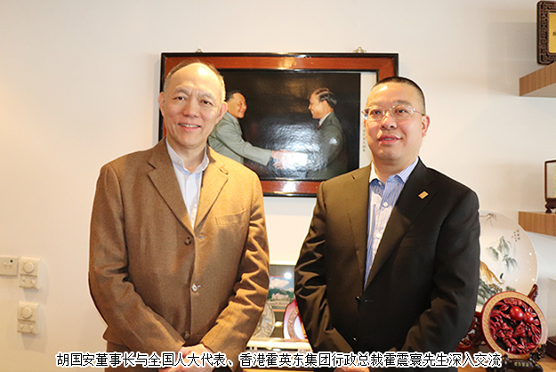 慶祝香港回歸20周年暨香港長沙聯(lián)誼會成立周年慶典期間,由中共長沙市委常委、統(tǒng)戰(zhàn)部長譚小平帶隊,中共長沙市委統(tǒng)戰(zhàn)部副部長、市僑聯(lián)主席王國平,中共瀏陽市委常委、統(tǒng)戰(zhàn)部長郭瑞,中共長沙市委統(tǒng)戰(zhàn)部聯(lián)絡處處長李燁,長沙市海外聯(lián)誼會副會長、香港長沙聯(lián)誼會名譽會長、綠之韻集團董事長胡國安等一行赴霍英東集團參觀交流。霍英東集團在香港工商界享有盛名,積極投身祖國改革開放和現(xiàn)代化建設事業(yè),長期致力于香港繁榮穩(wěn)定發(fā)展,受到黨和國家的充分肯定,創(chuàng)造了華人家族的一個傳奇。胡國安董事長與霍英東集團行政總裁霍震寰先生就當前世界經(jīng)濟形勢、國際金融政策、香港內(nèi)地經(jīng)濟文化交流等熱點話題進行了深入交流和探討,雙方共敘友誼、相談甚歡。胡國安董事長盛情邀請霍震寰先生赴湘興業(yè),加大投資力度,進一步推動深化港湘經(jīng)濟交流合作,共同為推動兩地經(jīng)濟社會文化繁榮發(fā)展獻智出力,再立新功!