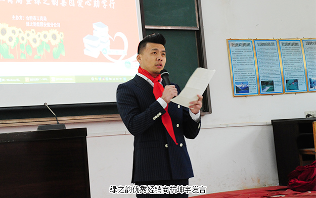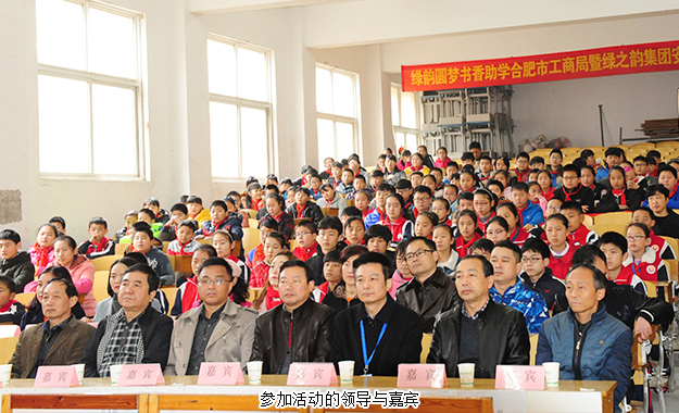 2017年11月29日,綠之韻集團(tuán)安徽分公司“綠韻圓夢·書香助學(xué)”活動走進(jìn)合肥市龍?zhí)翆W(xué)校。合肥市工商局經(jīng)濟(jì)檢查執(zhí)法局副局長梁宏祥受邀參加活動。綠之韻集團(tuán)安徽分公司經(jīng)理趙軍攜綠之韻高級經(jīng)銷商葛慧霞、杭坤宇和張善慧 、溫民主 、吳元華 、邵明月 、高愛華 、尚元芹 、張新娟 、賈付勤 、侯俊 、李剛 、馬蘭 、郭鳳 、張城濤 、張龍等愛心志愿者參加活動。