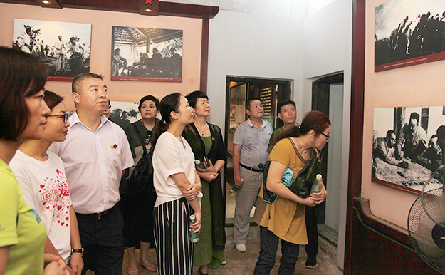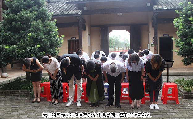 朗誦完畢后,綠之韻國(guó)際大酒店支部全體黨員有序進(jìn)入王震同志故居參觀。“為國(guó)開(kāi)基,將軍百戰(zhàn)彪青史;畢生革命,桑梓千秋仰大名?!边@一幅掛在故居門(mén)前的對(duì)聯(lián)是對(duì)王震將軍波瀾壯闊的一生的最好詮釋。大家滿懷敬畏和感恩,聆聽(tīng)著講解員描述王震同志生前為革命事業(yè)和黨的事業(yè)奮勇拼搏的光榮事跡,細(xì)致生動(dòng)的解說(shuō)將眾人帶到了戰(zhàn)火紛飛的革命歲月,帶到了新中國(guó)建設(shè)初期的火紅年代。