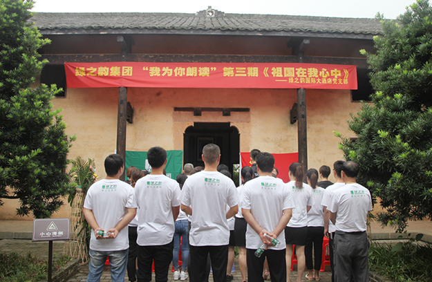 為慶祝祖國(guó)68周歲華誕,2017年9月27日,綠之韻集團(tuán)黨委開(kāi)展了《我為你朗讀》第三期“祖國(guó)在我心中”紅色朗讀活動(dòng)。綠之韻集團(tuán)副總裁劉淑娟,執(zhí)行總經(jīng)理劉維利,副總經(jīng)理胡均安、梅其慧,黨委書(shū)記劉云,集團(tuán)第二支部書(shū)記馮紅、綠之韻國(guó)際大酒店總經(jīng)理羅陳以及綠之韻國(guó)際大酒店支部全體黨員參加本次活動(dòng),并參觀了老一輩革命家王震故居。