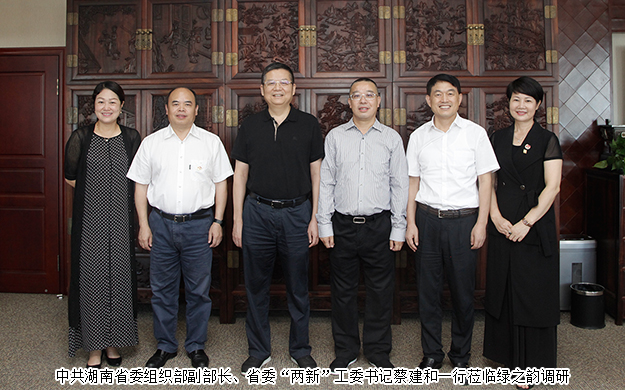 為加強非公經(jīng)濟黨組織建設(shè),引導(dǎo)非公經(jīng)濟健康發(fā)展和非公經(jīng)濟人士健康成長,大力營造濃厚的黨建工作氛圍,2017年9月26日,中共湖南省委組織部副部長、省委“兩新”工委書記蔡建和,中共湖南省委“兩新”工委辦公室主任蔡文輝一行蒞臨綠之韻集團調(diào)研。中共長沙市委常委、組織部長張宏益,中共長沙市委“兩新”工委專職副書記肖劍鋒,瀏陽經(jīng)開區(qū)黨工委書記郭力夫,瀏陽經(jīng)開區(qū)黨工委委員、管委會副主任鄒先瑜,瀏陽經(jīng)開區(qū)黨工委委員、紀工委書記肖賽男等陪同調(diào)研。綠之韻集團董事長胡國安,董事總裁勞嘉,黨委書記劉云、副書記許達仲等全程陪同。