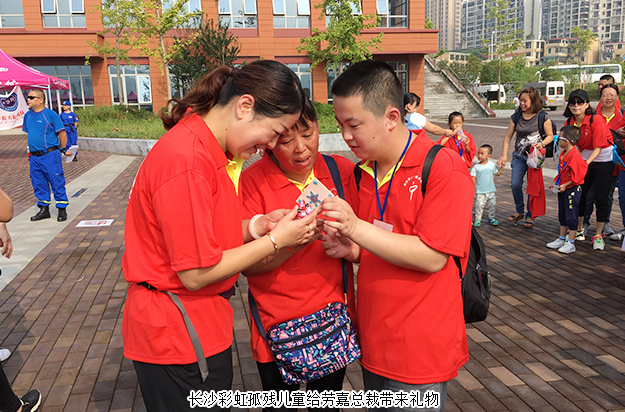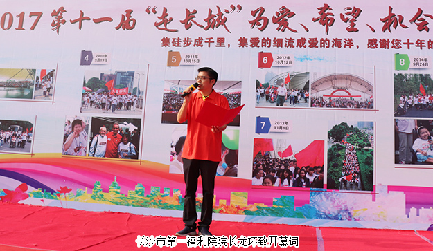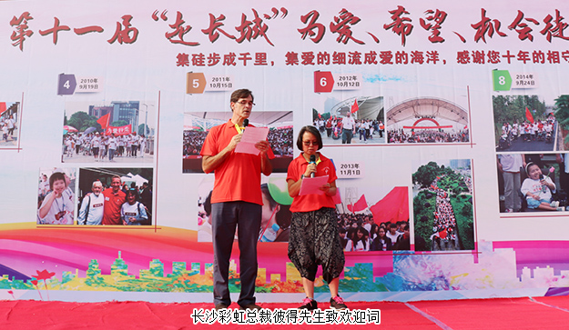 開幕式上,長沙彩虹總裁彼得先生致歡迎詞。長沙市第一福利院院長龍環(huán)致開幕詞,他們表示:2017年8月底,長沙彩虹孤殘兒童服務(wù)中心晨光中心的7名男孩已年滿16周歲,即將搬入社區(qū)小家庭,在新家庭學習生活自理、相互幫助、挖掘自身各種潛能。本次“走長城”活動就是為這7名男孩社區(qū)家庭籌措善款,感謝社會各界、愛心企業(yè)和社會人士的慷慨解囊,為推進孤殘兒童社區(qū)家庭的籌建項目,促進殘障事業(yè)的發(fā)展、共建幸福和諧家園貢獻出自己的一份力量。