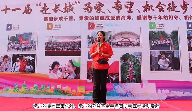 “走長城(Walk the Wall )”公益活動由長沙彩虹孤殘兒童服務(wù)中心(以下簡稱長沙彩虹)創(chuàng)始人高永恩先生于2007年發(fā)起,是一場旨在呼吁全社會關(guān)注孤、殘人士的愛心徒步活動。每年金秋,“走長城”在中國(北京、香港、長沙、衡陽、三門峽)、英國、美國、加拿大、澳大利亞等國家的數(shù)十個地區(qū)舉行。今年,在中國“走長城”活動的三個站點,將為長沙、衡陽的一群青少年孤兒融入社區(qū)環(huán)境、組建兩個“社區(qū)家庭”而籌備善款。自2014年初,綠之韻集團與長沙彩虹和孩子們結(jié)緣,胡國安董事長、勞嘉總裁每年多次帶隊看望孩子們,并捐贈愛心善款用于長沙彩虹湖南的孤殘兒童公益項目。