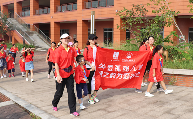 隨后,長沙彩虹總裁彼得,長沙市第一福利院院長龍環(huán)、副院長謝躍純、兒童服務(wù)科科長戴靜、兒童服務(wù)科副科長彭勇攀等分別為參加本次活動的愛心團隊授旗。