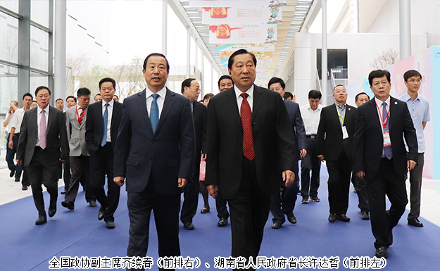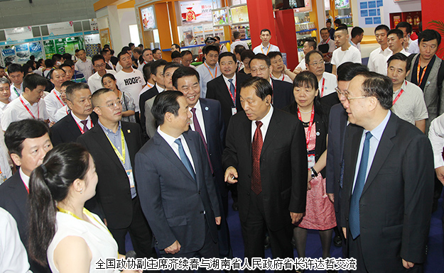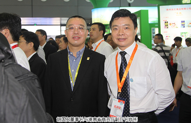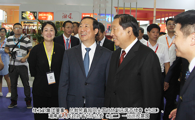 2017年9月14日,由商務(wù)部和湖南省人民政府共同主辦的中國食品餐飲業(yè)創(chuàng)新發(fā)展大會暨2017中國食品餐飲博覽會(以下簡稱食餐會)在長沙隆重啟幕。全國政協(xié)副主席齊續(xù)春、商務(wù)部副部長王炳南、湖南省人民政府省長許達(dá)哲,廣西壯族自治區(qū)人大常委會副主任高雄,湖南省人民政府副省長何報翔,湖南省政協(xié)原副主席劉曉,澳門投資促進(jìn)局主席張祖榮等領(lǐng)導(dǎo)出席活動。湖南省工商聯(lián)(總商會)副會長、綠之韻集團(tuán)董事長胡國安,湖南省工商聯(lián)女商會副會長、綠之韻集團(tuán)董事、總裁勞嘉受邀出席開幕式,并在開幕式前陪同全國政協(xié)副主席齊續(xù)春、商務(wù)部副部長王炳南、湖南省人民政府省長許達(dá)哲等領(lǐng)導(dǎo)一行巡視展館。
