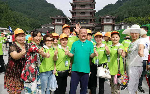 盛夏八月,綠之韻人在石筍林立中感受奇觀,在青山綠水中揮灑涼意,在家人團(tuán)聚中感受快樂。2017年8月9日-11日,綠之韻營銷精英張家界夏日清涼之旅成功舉行,來自全國各地的綠韻四五家人們?cè)诰G之韻集團(tuán)董事長胡國安、綠之韻集團(tuán)副總經(jīng)理夏運(yùn)良的帶領(lǐng)下,來到集桂林之秀、黃山之奇、華山之險(xiǎn)、泰山之雄于一體的張家界,共同度過了一段快樂與感動(dòng)交織的美好旅程。